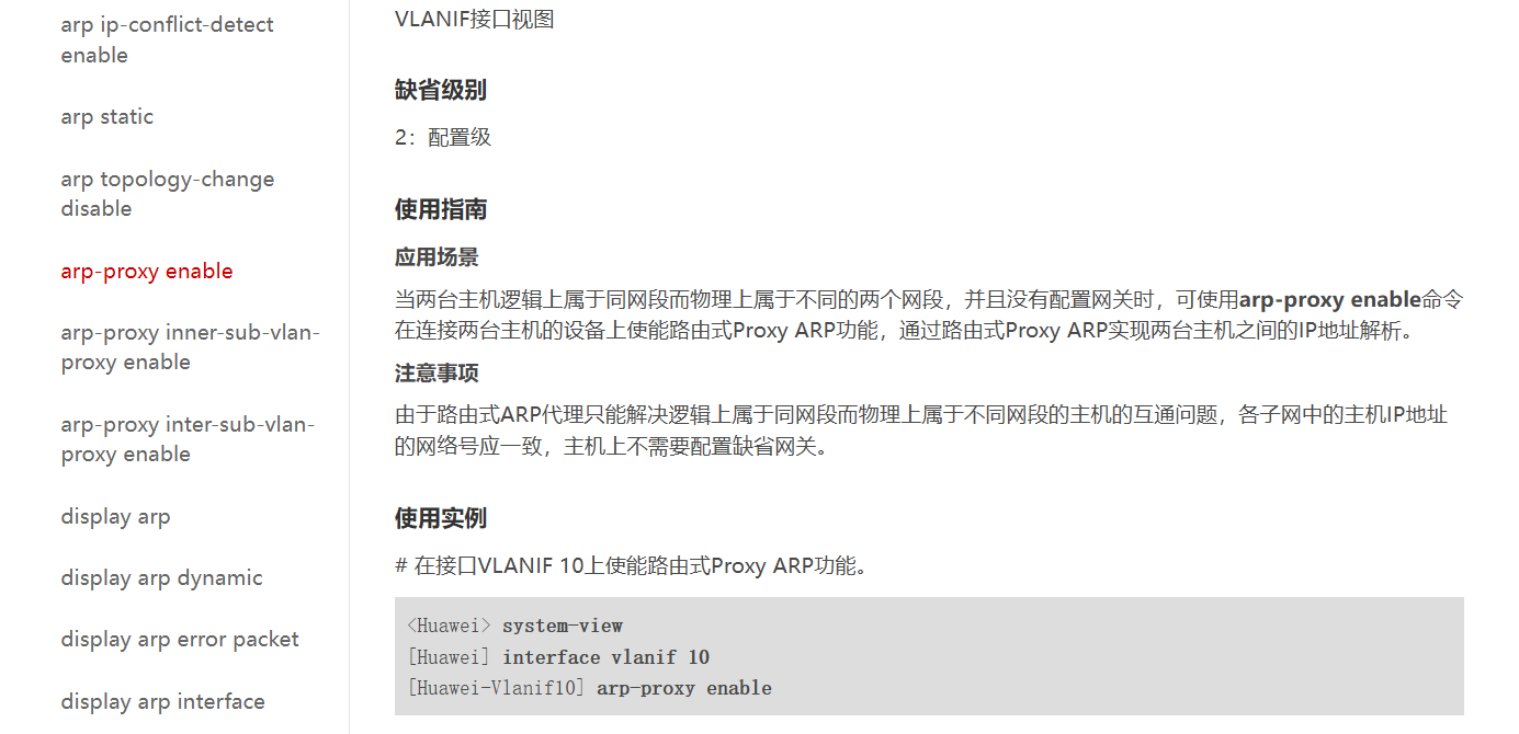当源和目的在同一个广播域,但是广播arp报文却发不过去时,用arp代理。比如,交换机两个接口在同一个vlan,但是交换机开启了端口隔离,这个时候,就可以用arp代理。arp代理大概有三种情景,原理都是一样的。