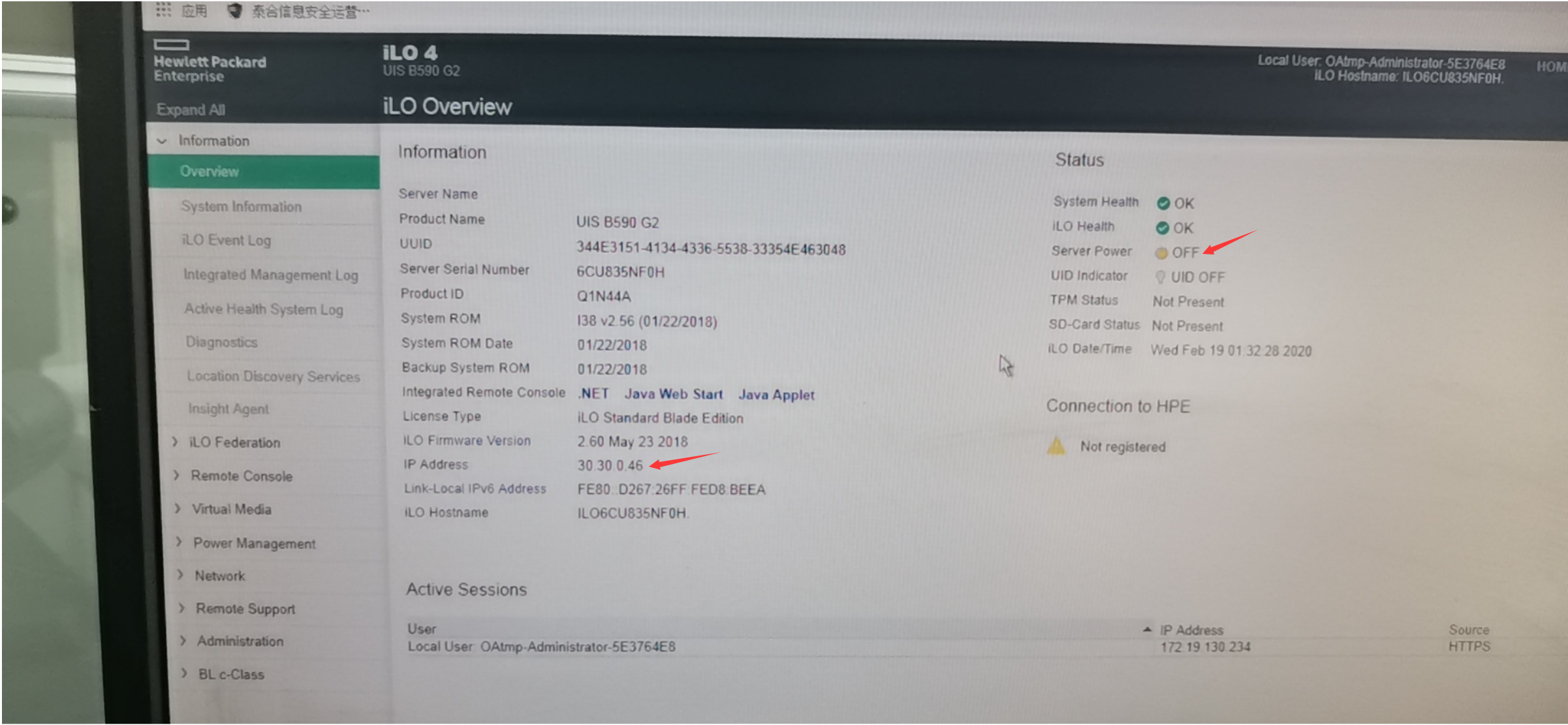 要看服务器的信息需要登陆到服务器的ilo中看的比较详细