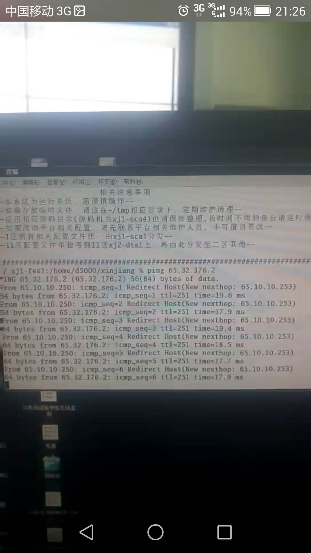 65.10.10.250、65.10.10.253分别是国家电网主站的纵向加密和交换机地址,现象就是ping 65.32.176.2 会出现icmp重定向