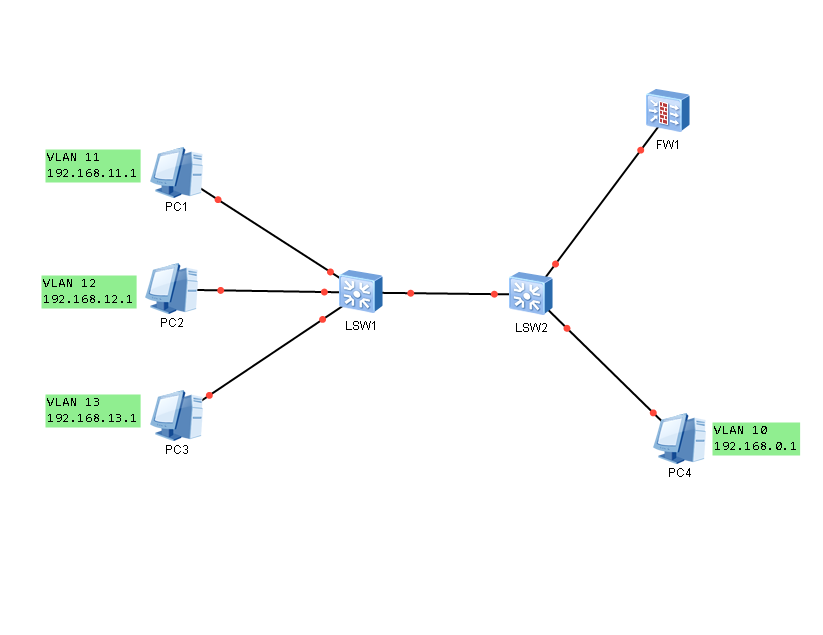 要求所有VLAN可以访问VLAN10,VLAN10连接的是互联网和一台服务器。