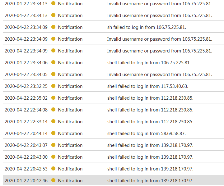 这个是有终端在尝试登陆你的设备~acl 把这个地址禁止了