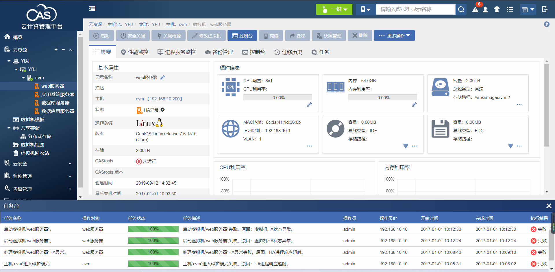 状态为HA异常 什么也不能操作 请问要怎么处理呀
