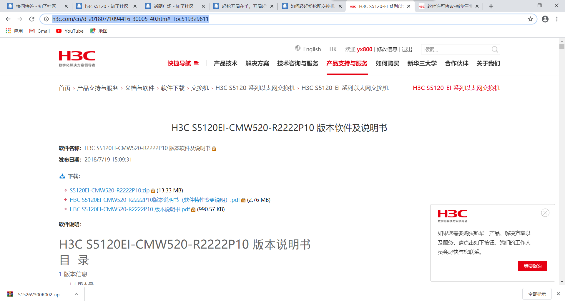 https://www.h3c.com/cn/d_201807/1094416_30005_40.htm 用户名:yx800 密码:01230123