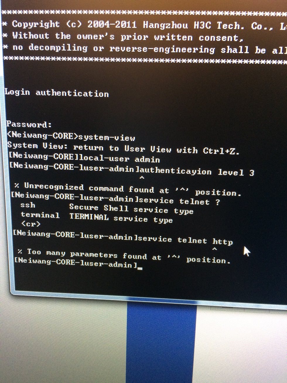 设置用户类型:service telnet http
