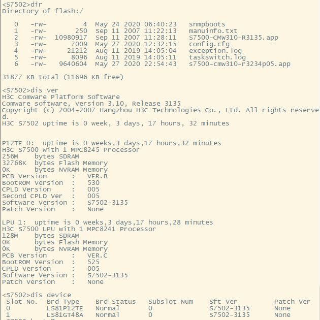 S7502交换机配备两块板,主控板LS81P12TE,业务板LS81GT48A。用主机程序 S7500-CMW310-R3234P05.app 升级业务板LS81GT48A的bootrom后,POE供电无法启动。急求LS81GT48A的bootrom文件。正常工作时的bootrom版本号为525