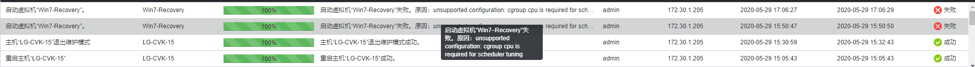 CVK突然无法在线迁移和启动虚拟机,报错信息为unsupported configuration: cgroup cpu is required for scheduler tuning