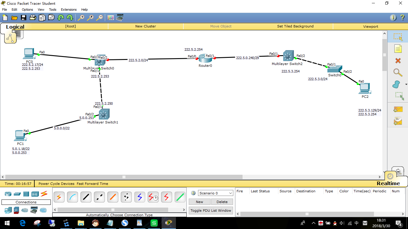 H3C路由器上有ACL 策略,现在内网5.0.0.0网段的PC访问不了h3c左边的Telnet服务和www服务,单内网222.5.2.0的pc机能访问对面222.5.3.0的Telnet和www服务,请看一下路由器上的配置帮忙解决。谢谢,网络拓扑如下图所示