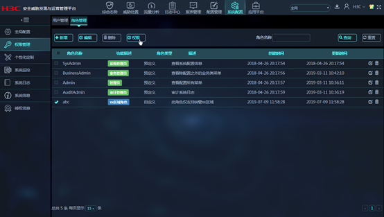 我们的态势感知平台CSAP-SA支持配置用户不同权限吗?没在页面上找到这个功能