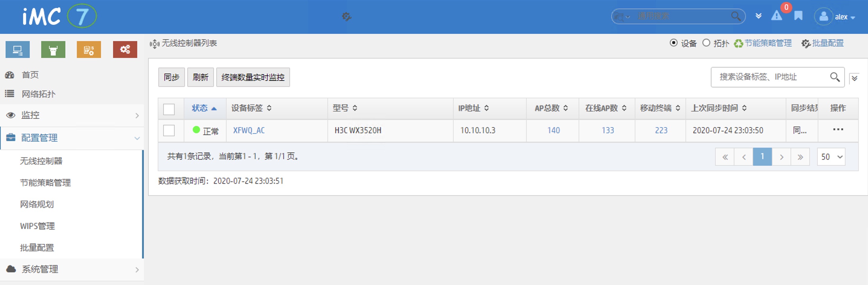 imc7 ap设备在线数据和wx3520h 设备在线数据错误