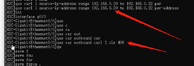 qos car inbound carl 1 cir 400,这条命令输到g0/9下出错