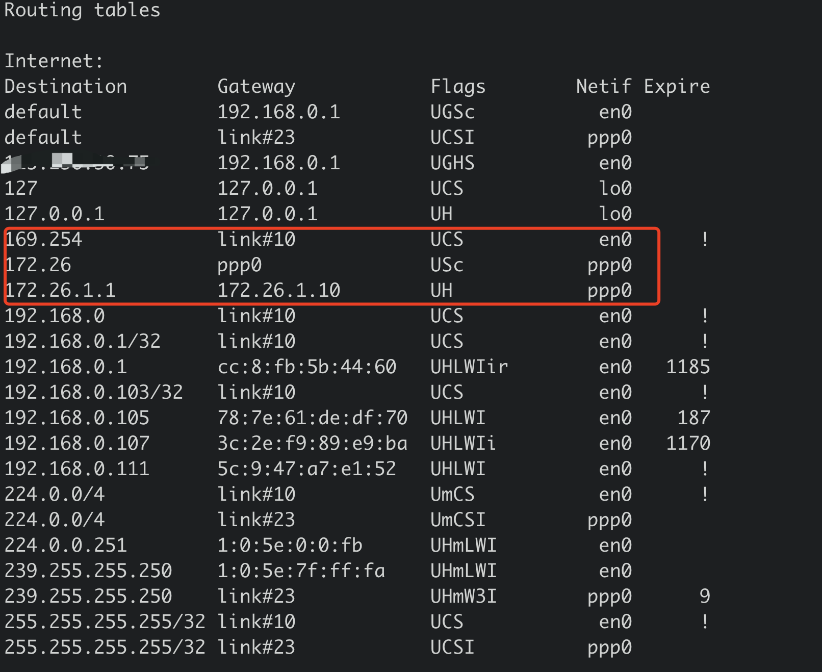 6 , 家中电脑连接VPN后本地地址为 172.26.1.11