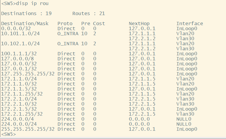 核心SW5去往接入SW3的路由有两条ospf等价路由,不知是否这个的原因: