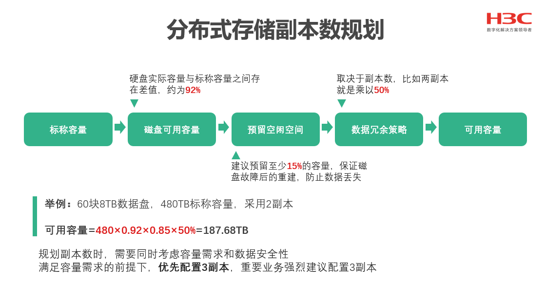 计算公式:可用容量=(标称总容量*0.92*0.85)/副本数