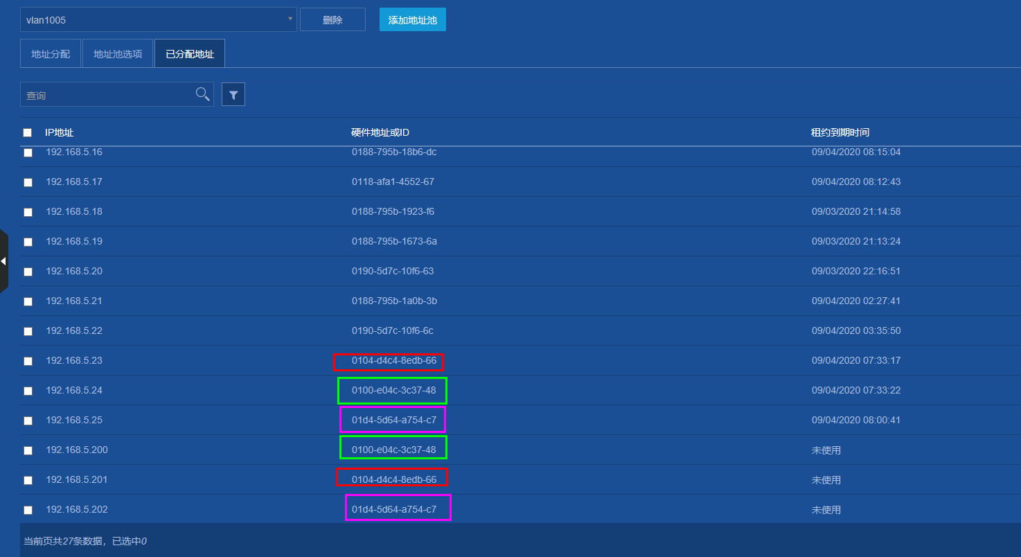 这三台电脑设置了 DHCP的静态绑定 但为什么不生效呢