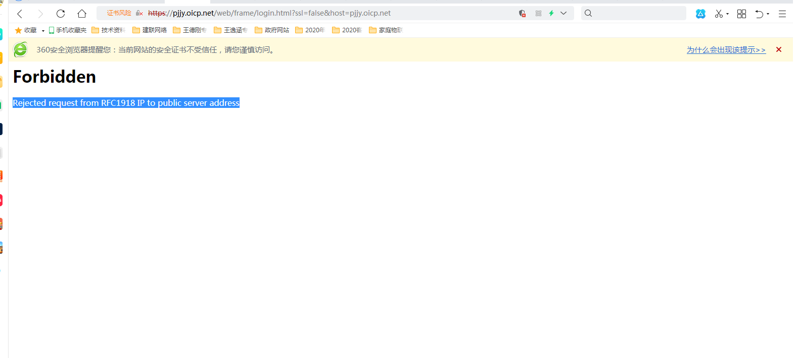 外网访问拒绝访问,提示Rejected request from RFC1918 IP to public server address如何配置,
