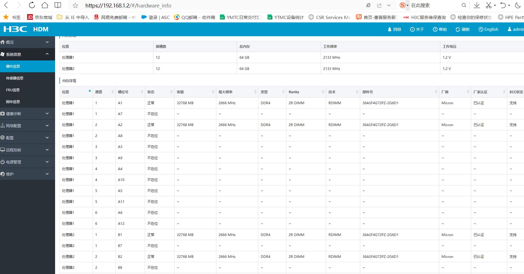 经常 CPU跑到100% 导致业务运行缓慢卡机,从HDM查看硬件对应内存信息都 正常,但是从CAS 平台查看每台物理主机 CPU2 对应内存信息是没有的