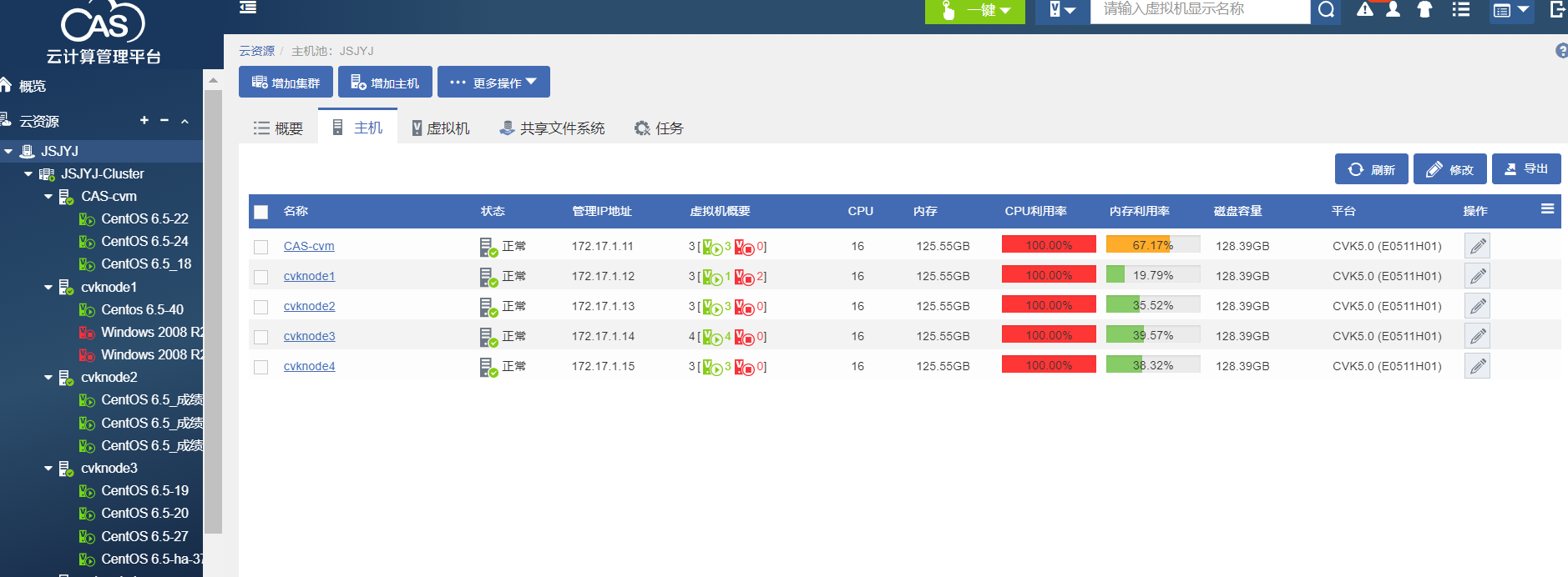 5台 4900G3 搭建了CAS 云计算管理平台