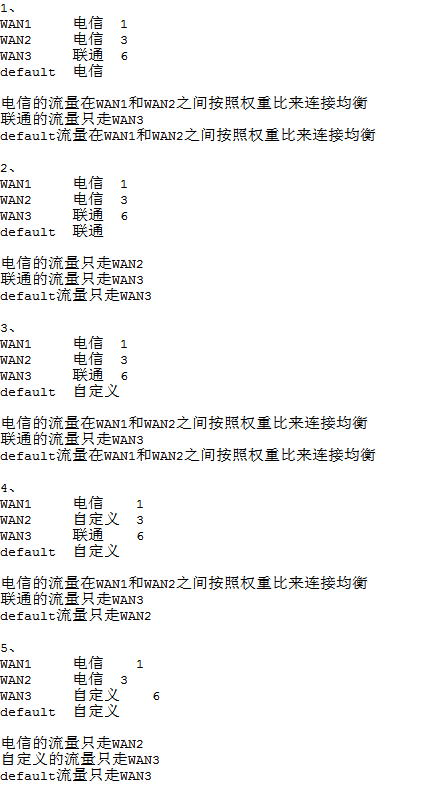 在三WAN口情况下,选择不同运营商接入,发现了如下情况: