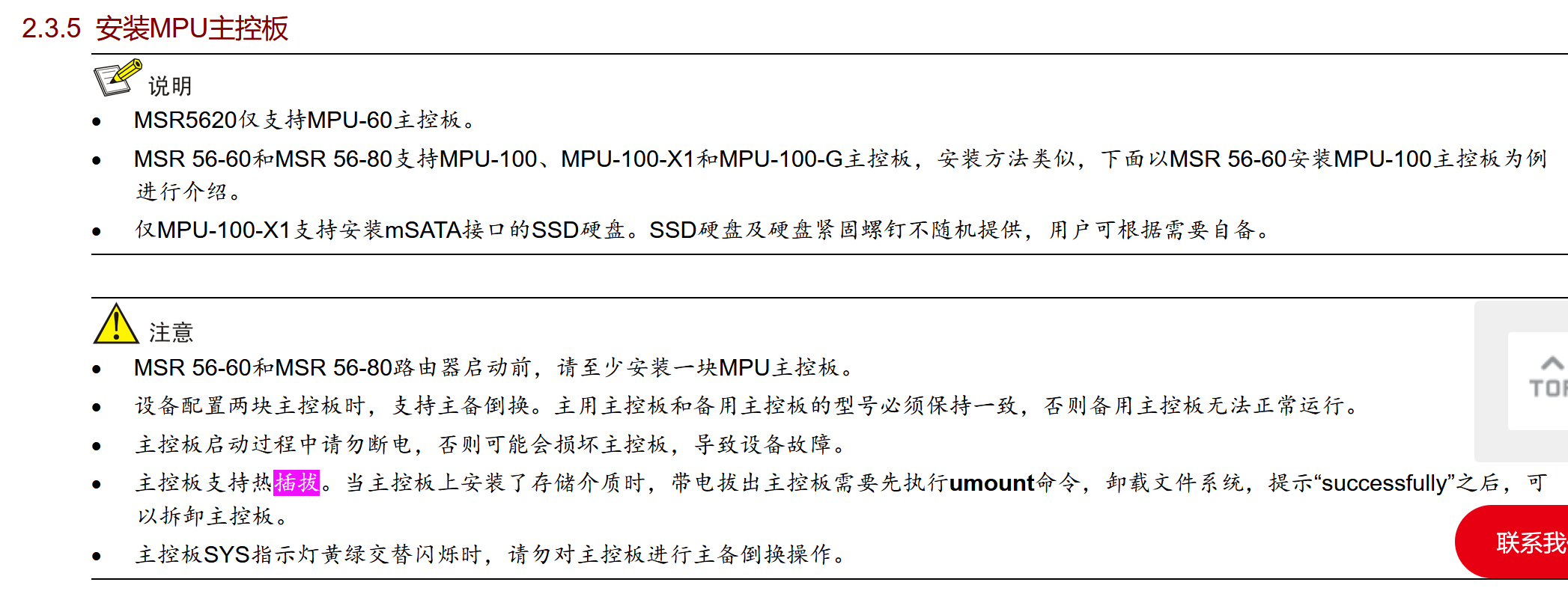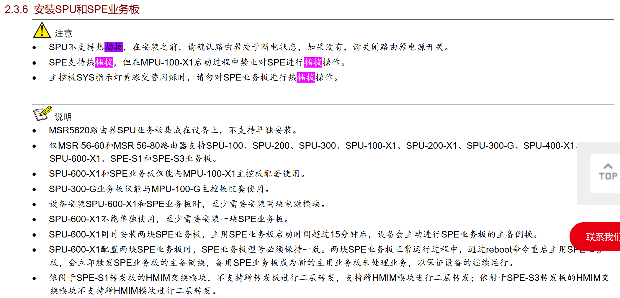 5、设备正在运行业务,想进行板卡插拔操作,是否需要整机下电? ---点击 相关产品“安装指导”-“ 01-正文 ”- -相关页面Crtl+F搜索关键词如“插拔”,快速定位到相关单板、接口子卡、硬盘等插拔情况,如下图不同可插拔模块插拔情况不同: