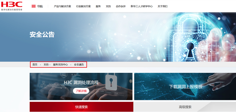 2、官网安全公告https://www.h3c.com/cn/Service/Online_Help/psirt/