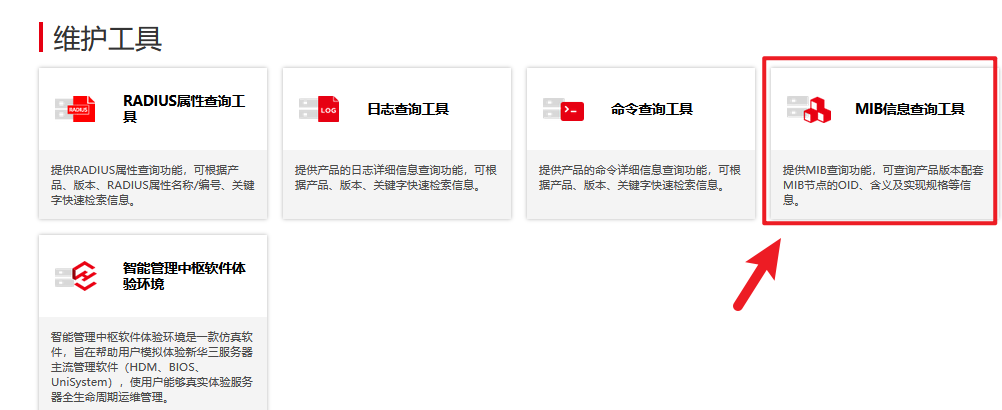 工具专区有一个“MIB信息查询工具”,输入 “ MIB文件名,MIB节点名,OID或含义关键字 ”可以快速搜索相关MIB节点。