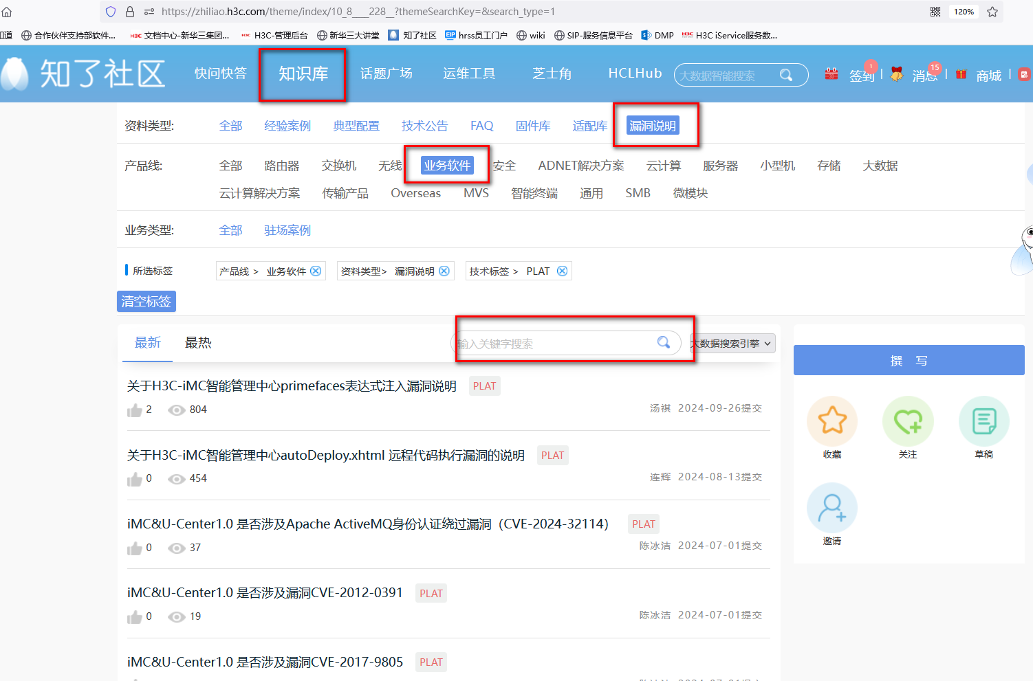 在 知了社区>知识库>漏洞说明中业务软件产品,输入漏洞的相关信息