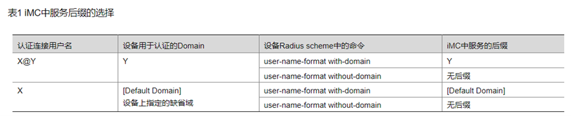问题原因:设备上的radius服务器的domain域配置和iMC侧的接入服务后缀配置不一致