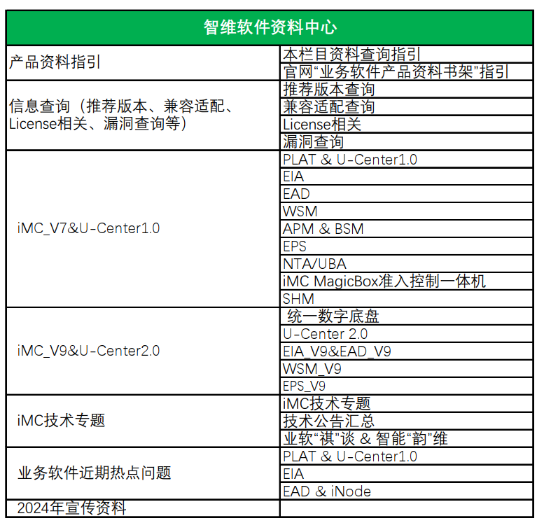 知了社区资料中心业务软件栏目全新上架,栏目分为六大模块对H3C业务软件产品资料进行了系统性分类, 共享服务平台资源体系,助力合作伙伴技能提升。