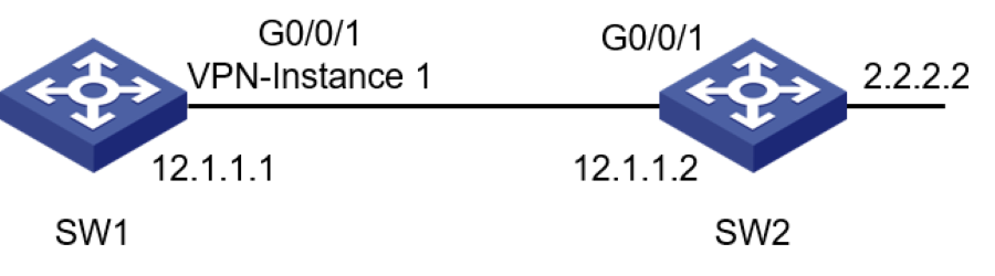 2)SW1的Gi0/0/1在vpn-instance 1中,且与SW2建立OSPF邻居