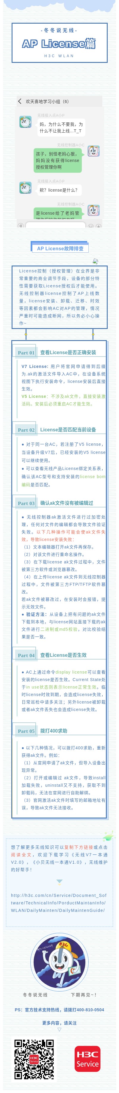 冬冬说无线 | 故障排查篇 - AP License,来源请关注新华三服务公众号-冬冬说无线栏目。