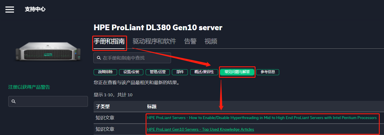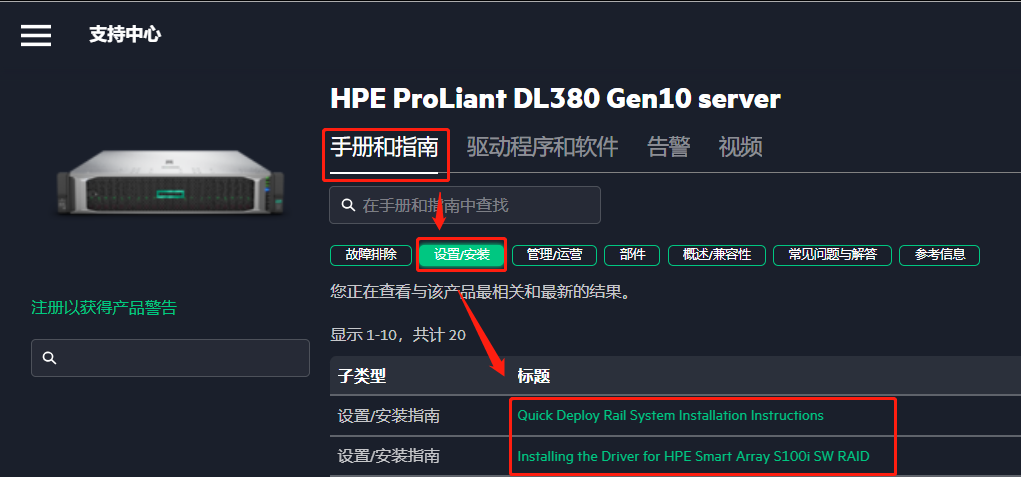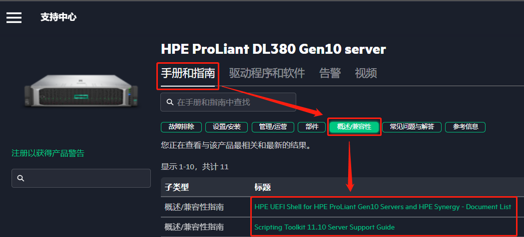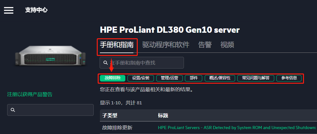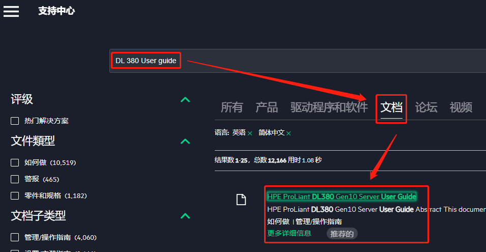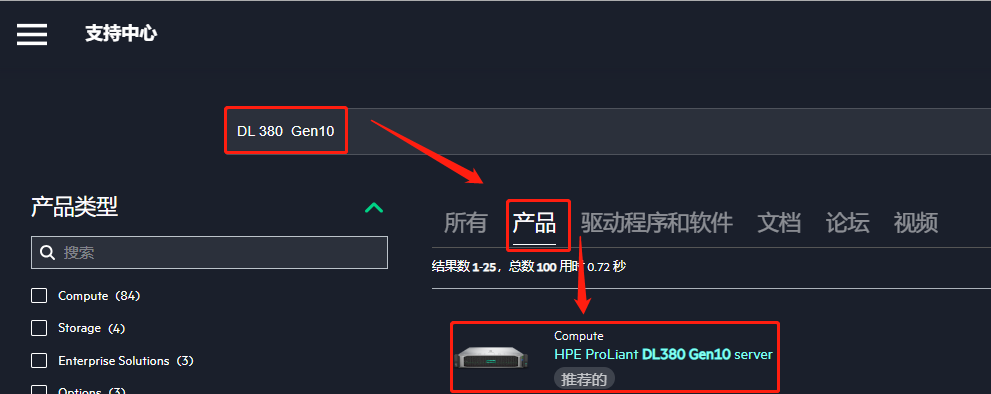 步骤1:上方检索栏输入具体服务器型号,如:DL 380 Gen 10;