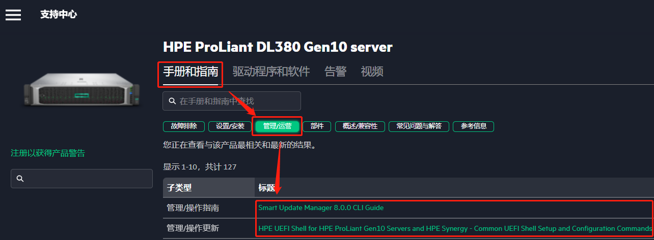 3. “管理/运营”指南:可查看此型号服务器相关的硬件管理以及运维方案,包括服务器用户指南和维护手册等。