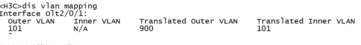vlan mapping nest single 101 nested-vlan 900 //1:2映射