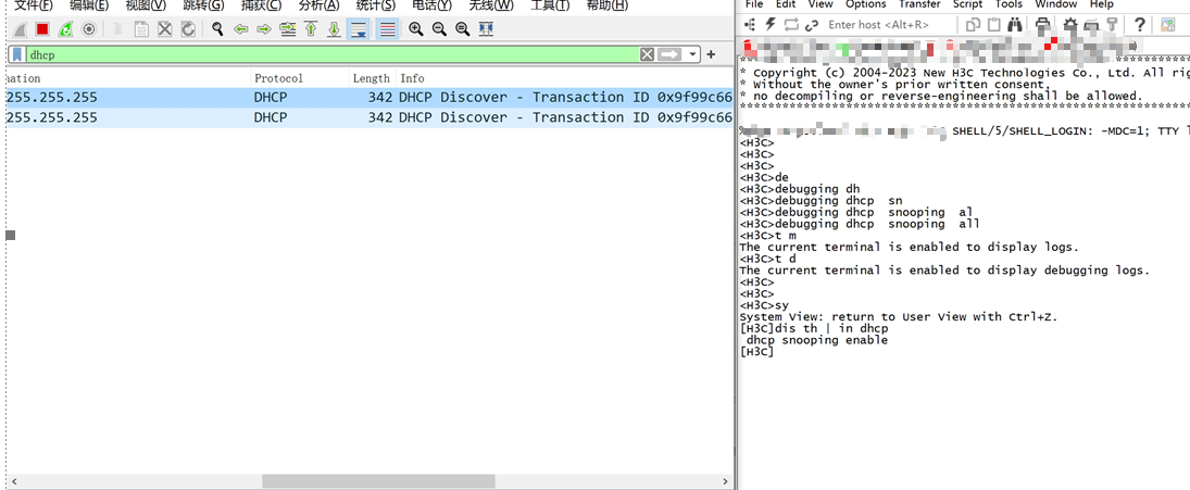 现场测试单开vlan mapping,或者单层vlan透传+dhcp snooping下面终端都可以正常获取地址,开vlan mapping+dhcp snooping之后在OLT口做本地镜像抓包也抓不到终端的请求报文。