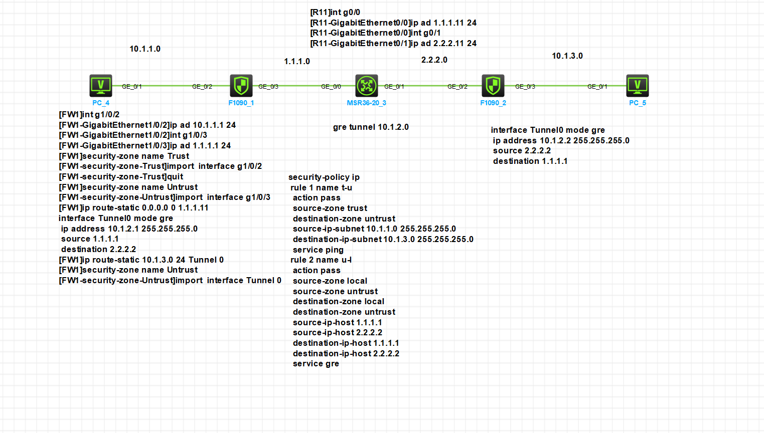 gre over ipsec vpn配置: