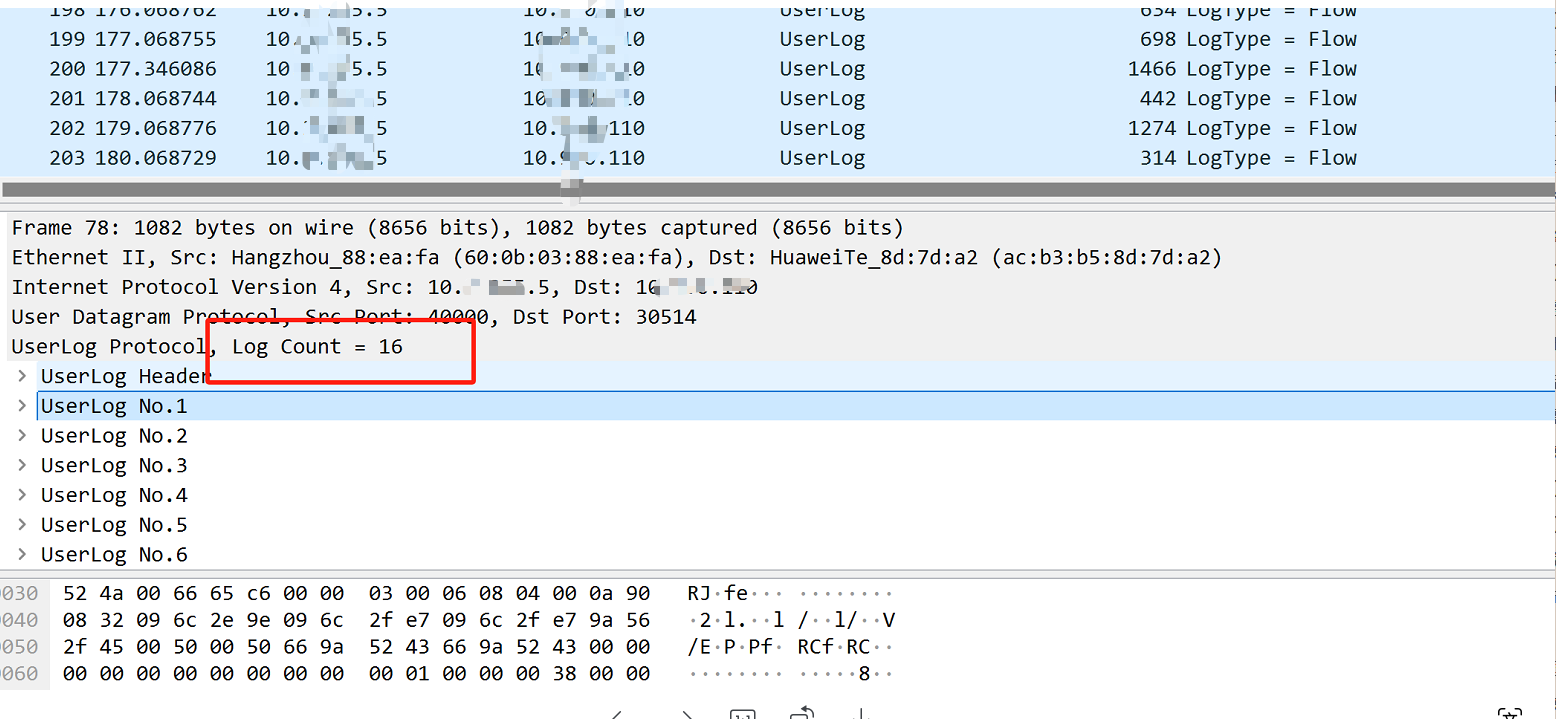 经产品线分析:CSAP-SA-V不推荐使用流日志,推荐使用快速日志,流日志只解析日志里的第一条,由于流日志一条里能带一二十条日志,性能没法控制,日志审计-V的版本性能扛不住,比如这条,一条里就带16条日志。