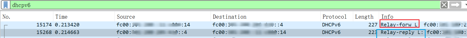 dhcpv4抓包看的话可以看到,第一个报文发过去的时候源地址也是使用的出接口地址,但是报文内带了dhcp终端网关的地址信息,这样的话后续dhcp服务器回包就会用这个网关地址作为目的地址回包。dhcpv6的报文结构和v4是不一样的。