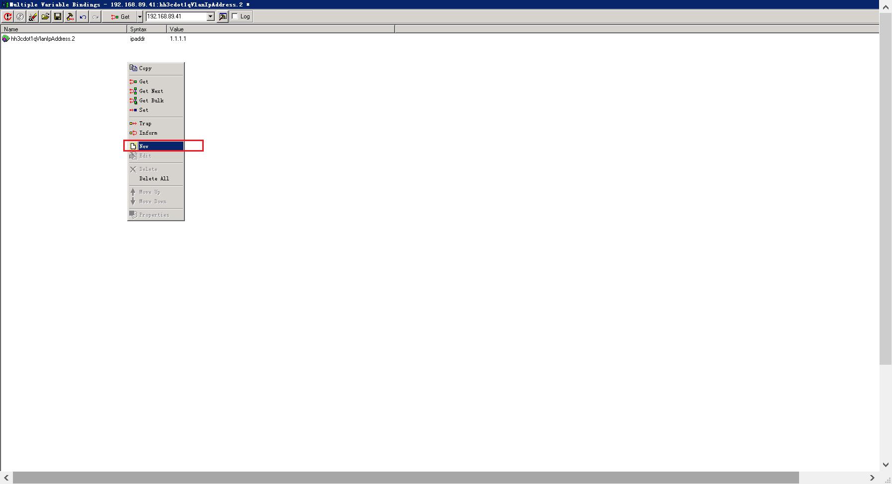 ⑤、右键空白处选择“new”,新增mask掩码的oid节点,注意节点后面加.2保证和ip地址的vlan编号一致: