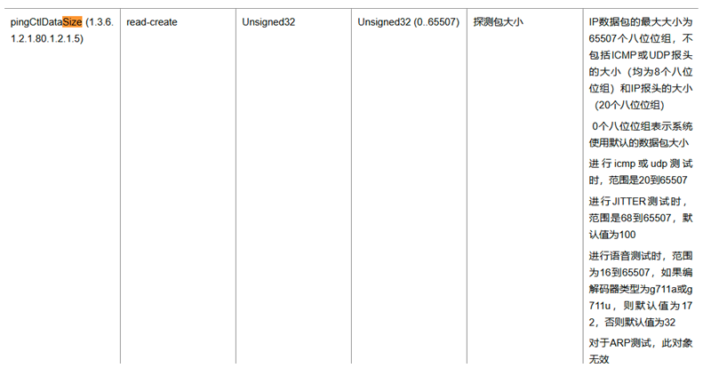 6、NQA探测包大小缺省就是100,可以用这个OID修改,比如改1000