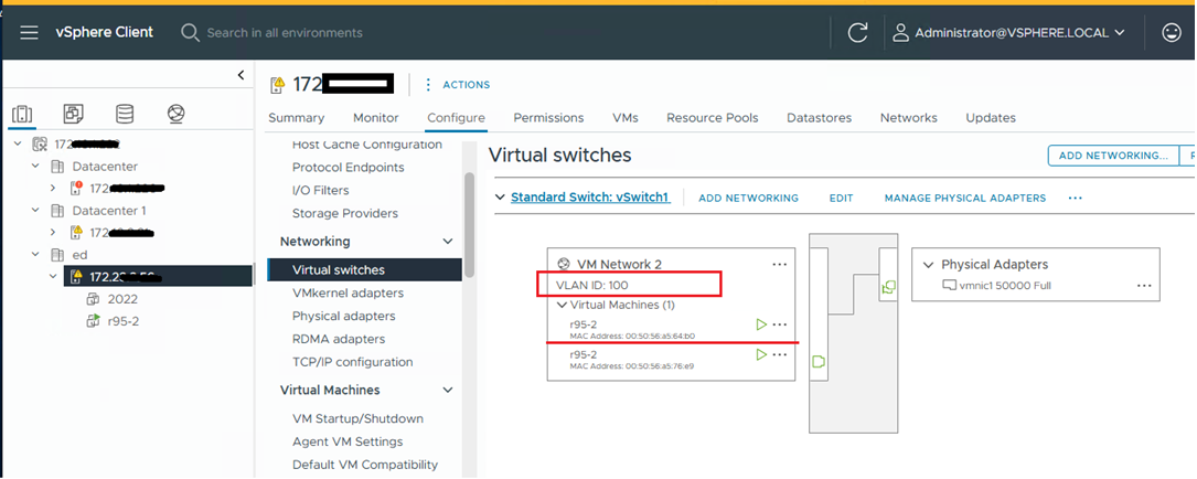 在需要 VLAN 的场景中,使用默认虚拟网络接口 (vmxnet3) 配置虚拟机。