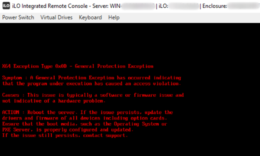 出现此问题时,HPE iLO 集成远程控制台将报告以下消息: