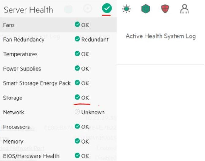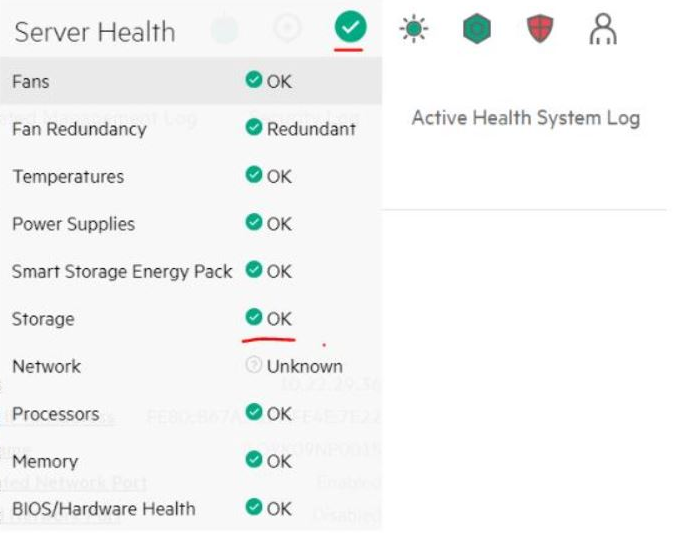 iLO 服务器运行状况选项卡中的存储状态显示不正确: