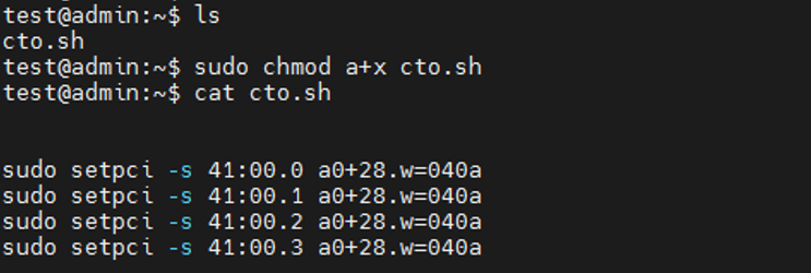 (3)将最后一位修改为a,写回寄存器,每个bus号都需要执行。以第一个网口为例:setpci -s 41:00.0 a0+28.w=040a