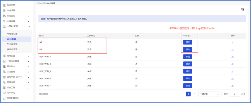 创建第二个wifi,ssid名称是B3,桥接业务vlan3