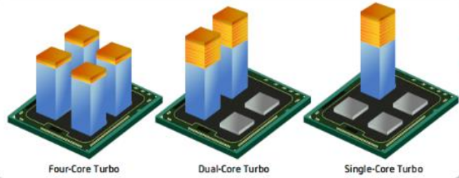 3. 但是如果要睿频功能启用,就需要开放这个阀门,那么造成的结果就是不同核心频率自动调节,有些提升,有些就会下降,并且根据Intel的不同代CPU手册,要达到某个睿频频率,能够使用的CPU核数也会有限制;