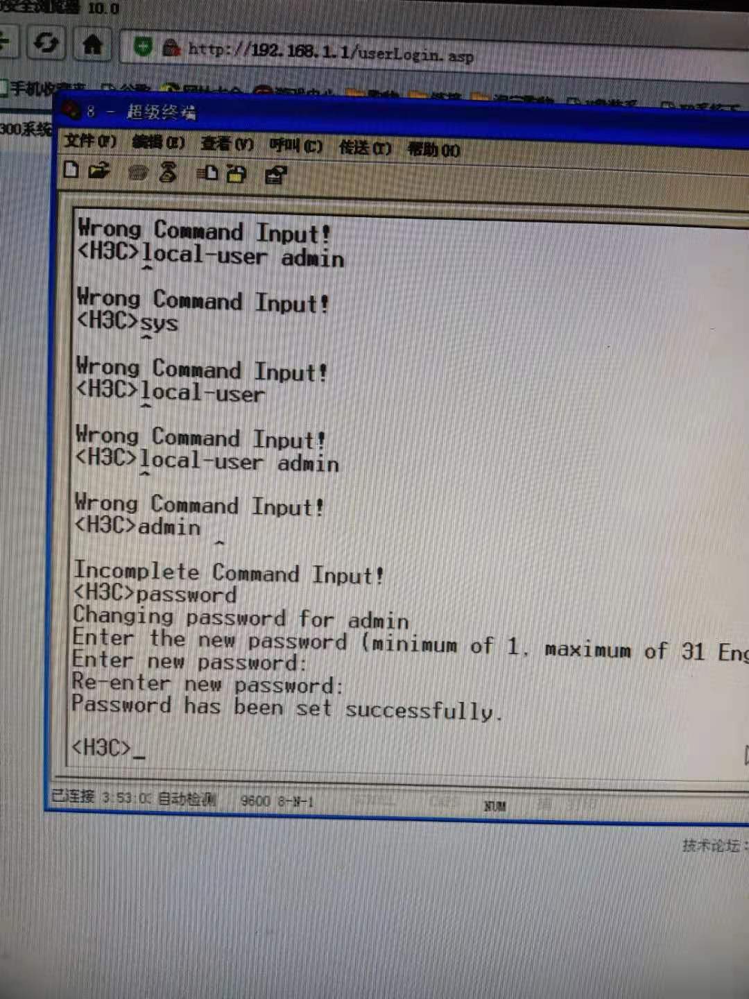 <H3C>提示进入设备命令行,输入password命令并回车,按照系统提示,提示:enter new password(输入新密码),则可以直接输入新密码,并重新输入一次确认即可。