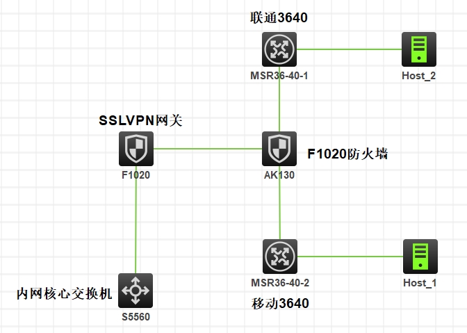 如图拓扑结构,在1020上配置了SSLVPN,AK130透明部署,联通出口可以访问到SSLVPN,移动的无法访问SSLVPN,问问大家有什么解决方式可以实现我移动联通可以同时访问SSLVPN。