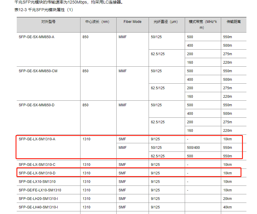 补充,sfp-ge-lx-sm1310-d与sfp-ge-lx-sm1310-a
