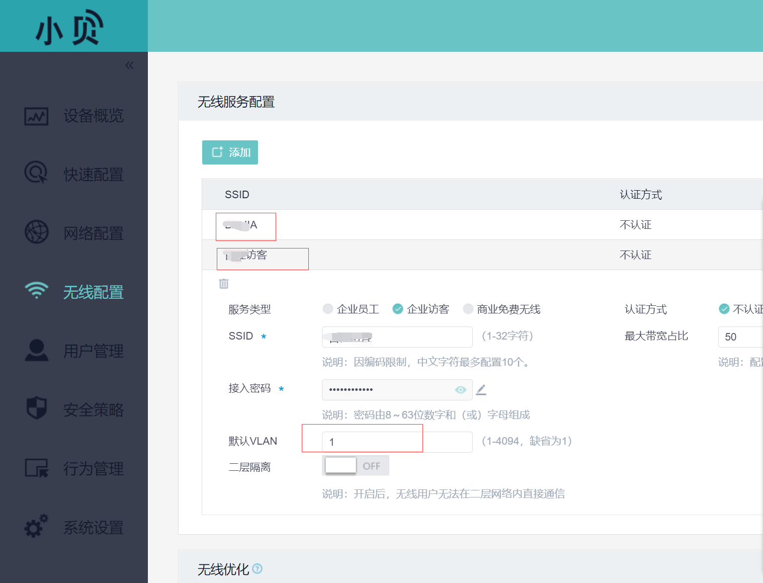 MSG360-10添加访客ssid和员工ssid怎么设置不同的vlan?默认vlan都是1,修改成不是1后就链接不了网了。该怎么设置不同的vlan?