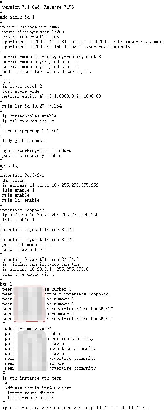 现有路由器大概配置如图,pos3/2/1是现在的上行口,如果再加一个Ge3/1/1口作为备用链路接口,与上级路由器新开一对互联地址,大概需要配置什么?尤其是如何实现双链路主备自动切换的保护模式?(至上级没有静态路由)